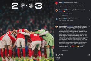 体育资讯01月26日讯 本轮英超,阿森纳2-3遭曼联绝杀,联赛近3轮2平1负。赛后,阿森纳社媒发布战报,配文称:周三晚上我们将迎来一个迅速翻开新的一页的机会。