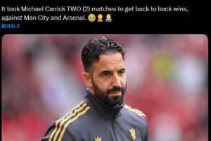 【炒晚了?】曼联球迷发帖:阿莫林用了35场比赛才取得连胜,而卡里克只用了两场,对手还分别是曼城和阿森纳。