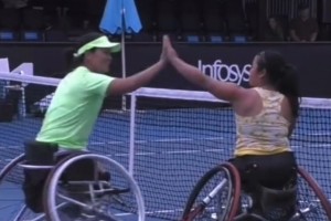 体育资讯1月30日讯 澳网轮椅组女双决赛,头号种子王紫莹/李晓辉2-0击败2号种子朱珍珍/上地结衣,卫冕澳网冠军。