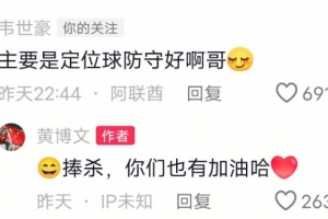 黄博文逗趣回复:捧杀,你们也要加油哈