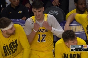 第三节进行到4分多钟,拉拉维亚抢篮板领到个人第六次犯规,被罚下。