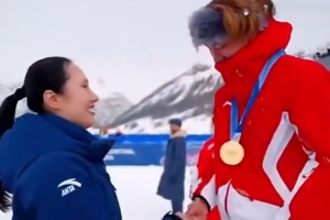 颁奖仪式上,国际奥委会委员张虹为他颁发了这枚金牌。张虹曾在2014年索契冬奥会女子速度滑冰1000米比赛中,为中国速度滑冰实现冬奥金牌零的突破。两代冬奥传奇同框,也见证着中国冰雪运动的传承与突破。