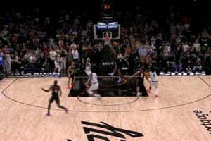 追着打!阿努诺比抢断反击 篮下顶开申京暴起双手扣篮