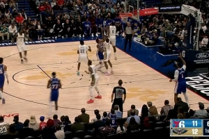 追着打!阿努诺比抢断反击 篮下顶开申京暴起双手扣篮