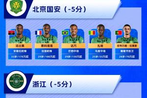浙江(5):卢卡斯、米特里策、朴镇燮、托利奇、瓜里拉帕