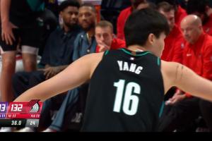 GIF-杨瀚森背打翻身出手~!!给了走步违例~!!