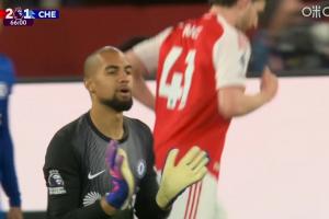 丢球后桑切斯马上抗议,马上给的镜头,场边罗塞尼尔也在示意VAR。