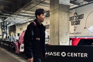 比赛末节,杨瀚森倒地抢球时后脑勺磕到勇士球员理查德的膝盖,他在简单休整后选择回到场上继续比赛。