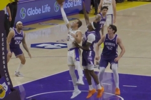 望无大碍!科林斯助攻尼德豪泽暴扣 但自己手臂被撞伤痛苦倒地