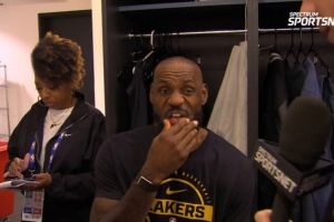 当被问到今晚球队在攻防两端有什么亮点,詹姆斯说:“我认为我们在进攻端的表现很不错。我认为在防守端,我们有一些要点,我们想要对他们施压,但也要在他们面前保持防守身位,迫使他们投受干扰的两分球,迫使他们出手运球后受干扰的三分球,而他们投进了很多这种球。我认为第一节的哨子吹得非常紧,我认为他们貌似第一节就罚了20次。(记者提醒是22次)是的,在这种情况下,你就很难建立好防守。我们有几次给了自己追回比分的机会,但这样追分的难度很大。”