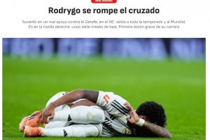 在皇马0-1赫塔费的比赛中,罗德里戈第66分钟扭伤膝盖,随后继续比赛。