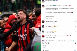 他也在赛后通过社媒晒出自己的庆祝照并配文:“简直无法用语言形容!😍💪🏼无比开心和自豪地在如此疯狂的气氛中打入我的首粒进球,我的新家!”