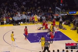 谁也不让谁!杰伦·史密斯抢篮板和里夫斯纠缠在一起 双方争球