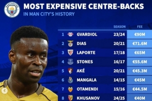 体育资讯1月20日讯 曼城已经官宣签下格伊,《转会市场》也统计了曼城队史中卫引援榜,格伊仅位列第12位。