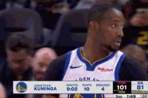 GIF-库里替补席给库明加鼓掌