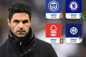 阿森纳在过去10天左右的时间里接连出战了四项赛事,并且全都是客场,他们因此成为了顶级联赛历史上,首支做到这一点的球队。