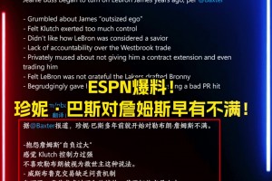 上一篇: 猛料ESPN曝出:珍妮本不想续约詹姆斯!甚至想交易他!!